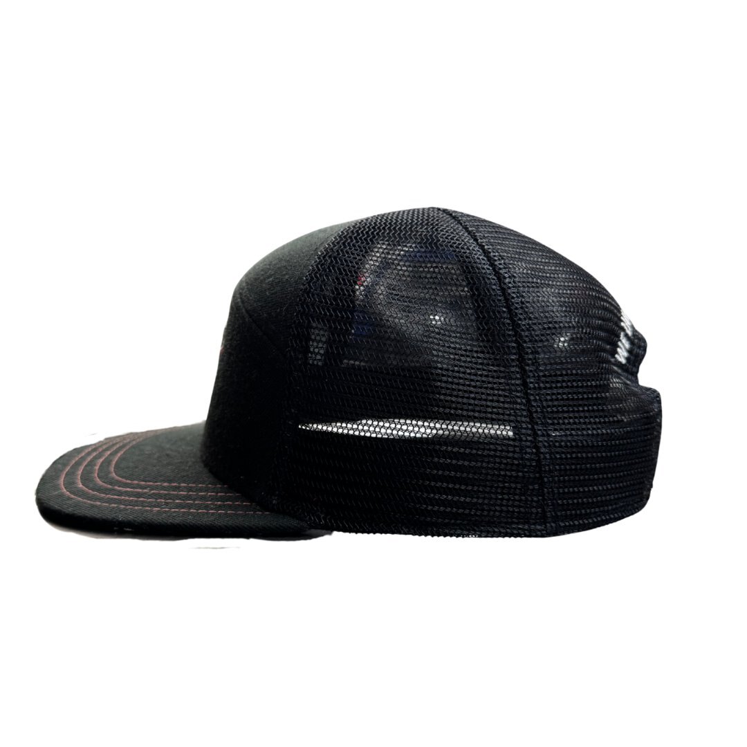 Sturdy black cotton front with ventilated mesh back