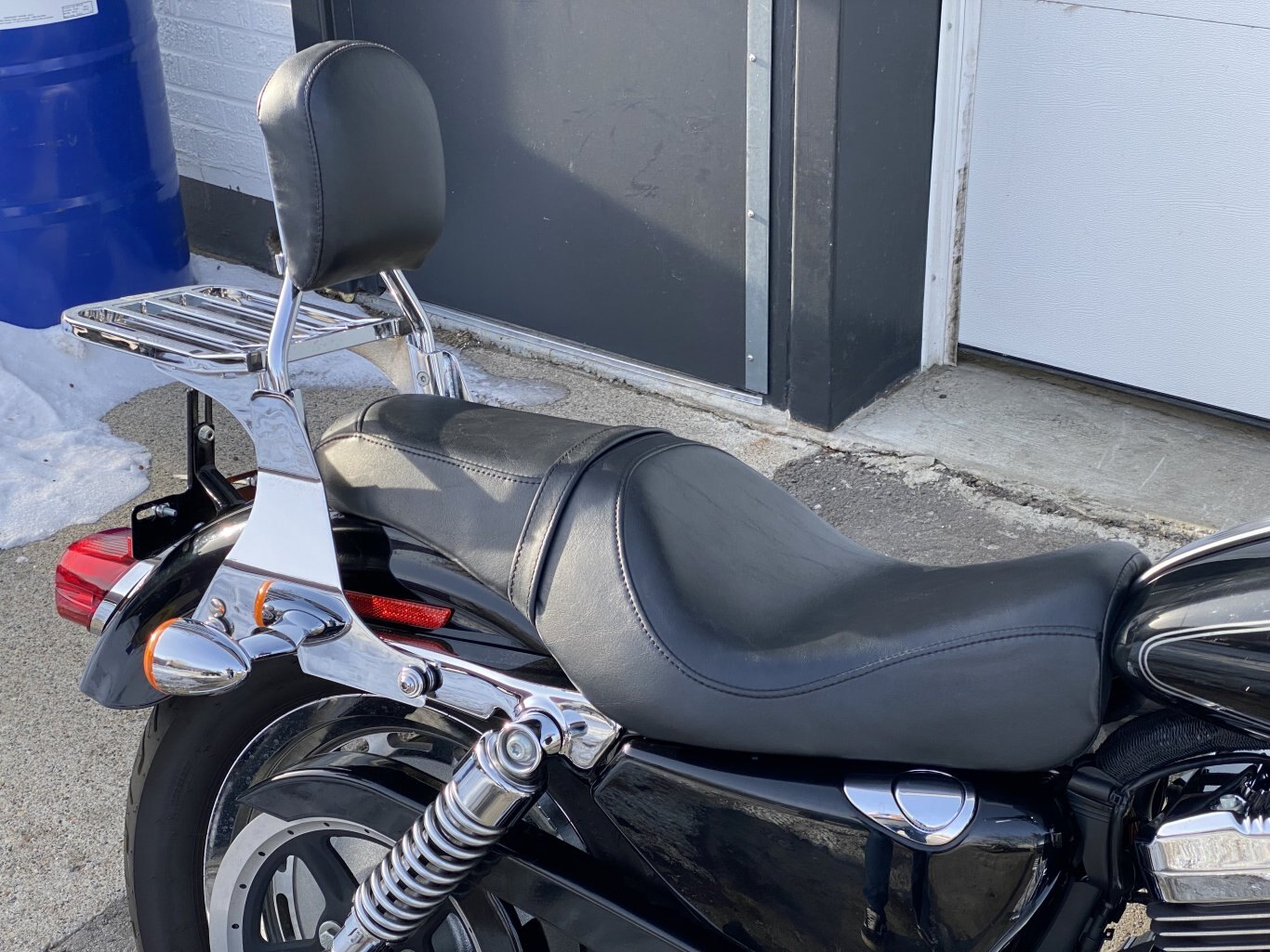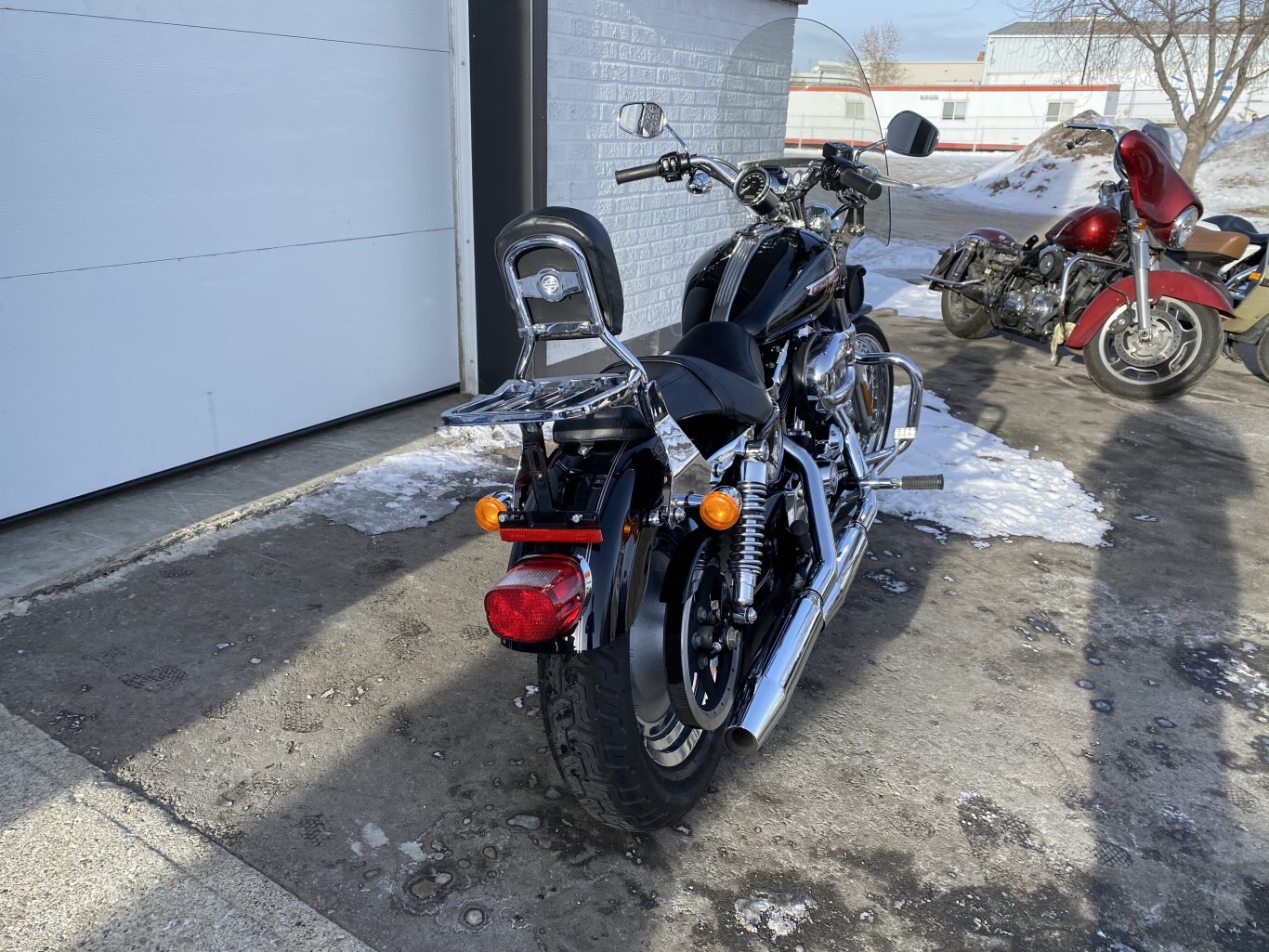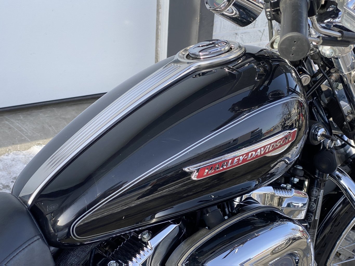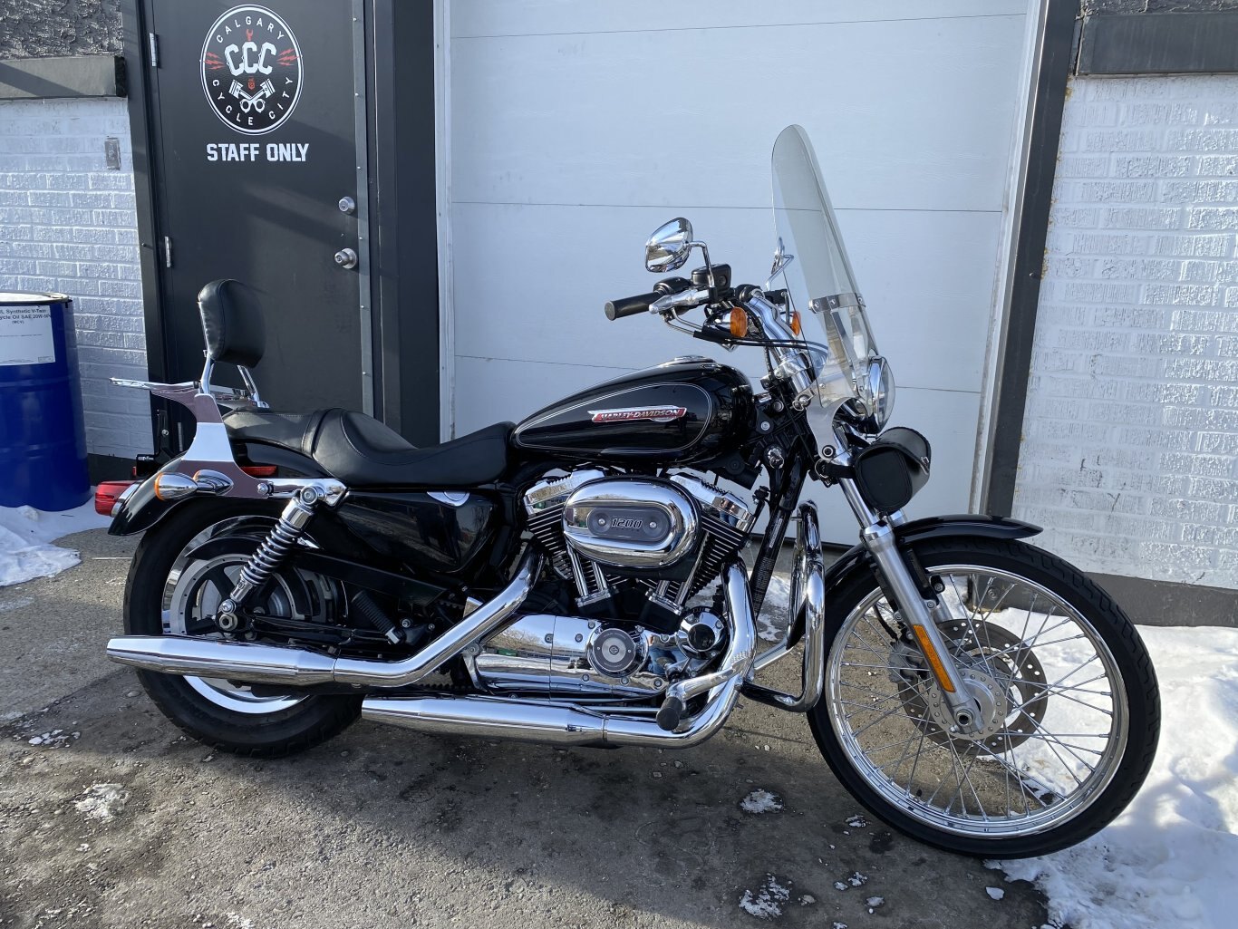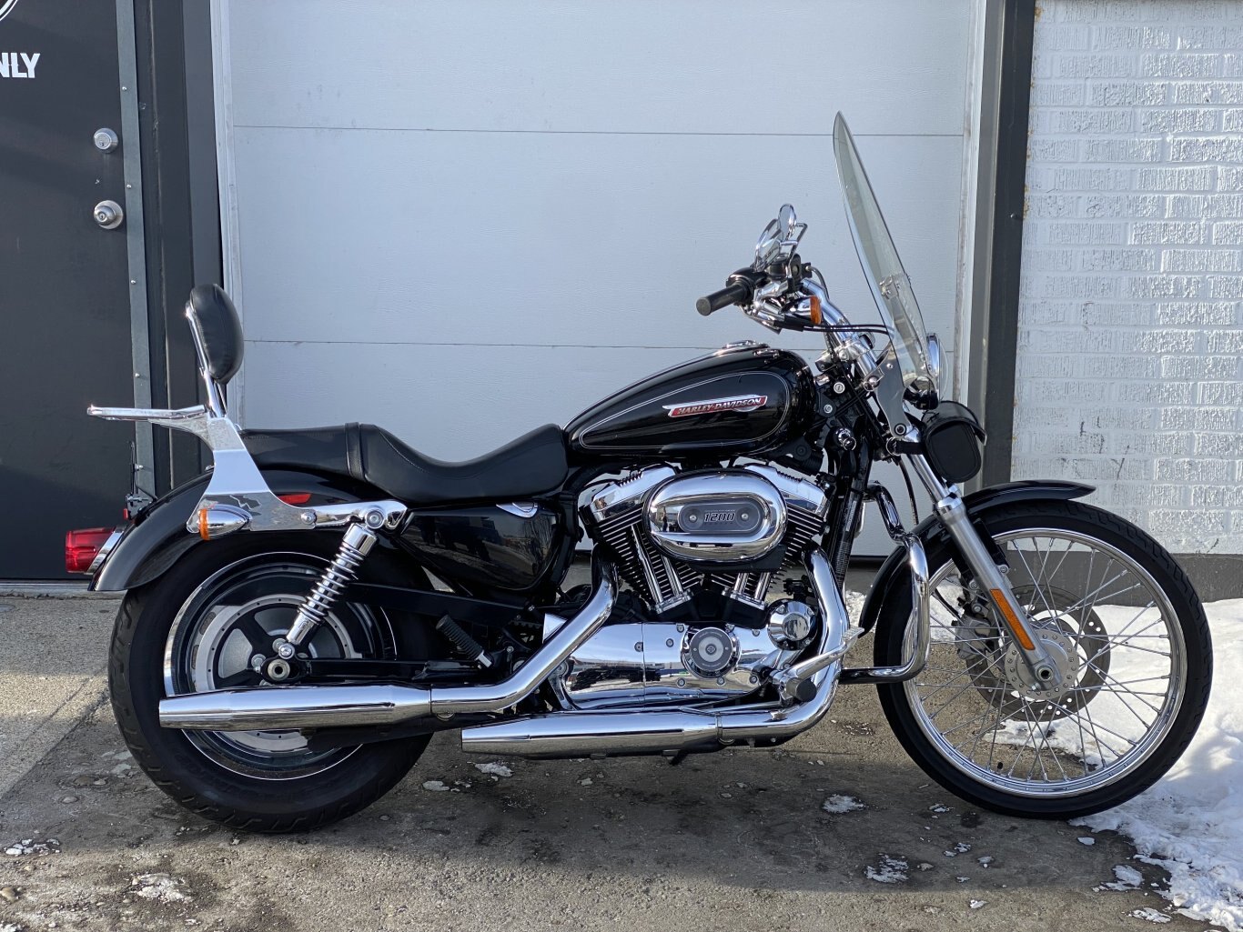 The 2008 Harley-Davidson XL1200C Sportster Custom features a 1200cc Evolution V-twin engine, 5-speed transmission, fuel injection, and a low seat height, with specs including ~79 ft-lbs of torque, a 562 lb dry weight, 4.5-gallon tank, and standard chrome details with a classic custom look, including forward controls and a pull-back handlebar, available in 105th Anniversary editions with unique paint.