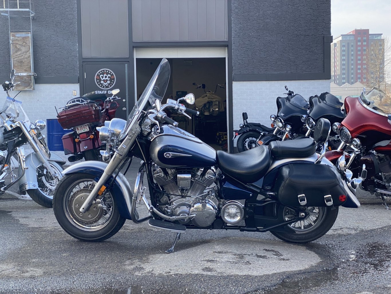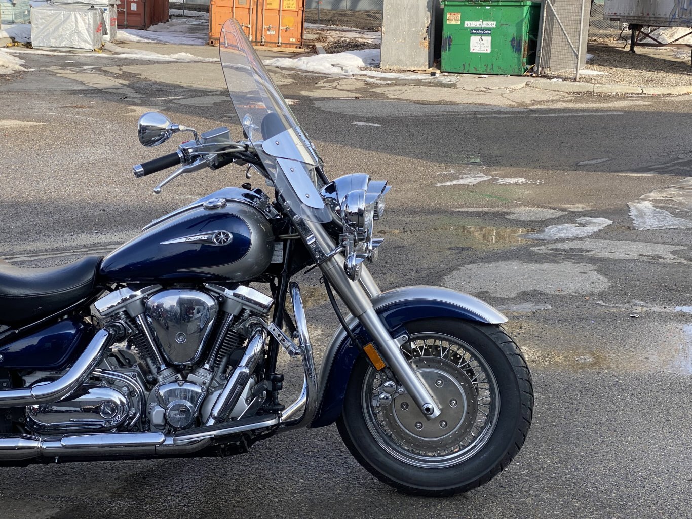 This XV1700 comes equipped with a detachable windscreen, vance&hines mufflers, highway crash bars and pegs, a 2-up seat, passenger sissy bar, and leather saddlebags! Fresh oil and filter, and tires brand new last season with less than 3000km on them. In-house financing available O.A.C, call to learn more about this unit!